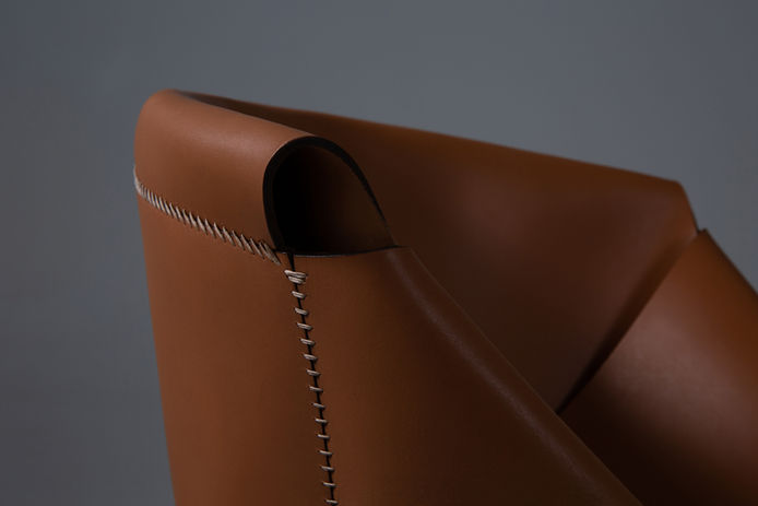 Pode-se dizer que esta é uma cadeira “moldada” em couro. Aqui o material não é um mero coadjuvante mas faz parte da estrutura do produto, adaptando-se ao corpo. Essa capacidade de adaptação traz imenso conforto, o que a torna adequada para o uso em mesas de jantar.