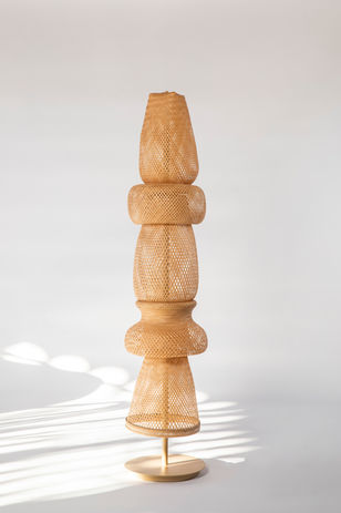 The lamp proposes the association of various traditional Baniwa utility basket shapes with a light source and support, aiming to unite the technology of Brazilian industry with vernacular and artisanal wisdom.