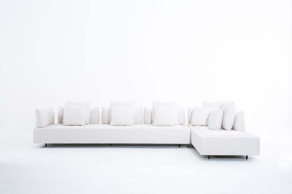 The Plug sofa offers complete flexibility in its layout, allowing the addition of side tables, backrests, and lamps. The seat base can also be used as a bed, providing multifunctional comfort. All components of the sofa feature removable covers for easy maintenance.