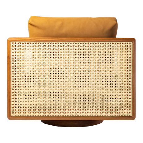 A peça nasce a partir da coleção Joaquim - uma bela homenagem ao filho mais velho do designer Bruno de Carvalho - e tem trabalho minucioso de chanfros e encaixes de madeira maciça que formam molduras para receber tramados de forma sextavada em fios de algodão. Com design atemporal e conforto único, a poltrona recebe composição de espumas e fibras de pet reciclado. Para realçar sua versatilidade, aplicamos giro na base.