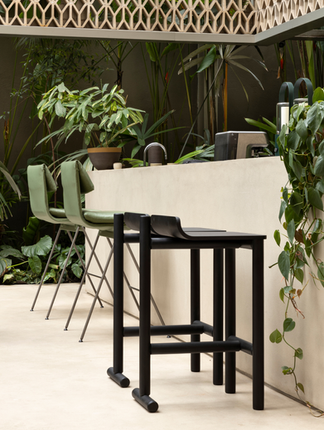 A banqueta Sabiá foi pensada para o uso em ambientes descontraídos. A peça presta referência à cadeira Girafa, da arquiteta Lina Bo Bardi, que com maestria soube atingir os mesmos princípios! Adequada para uso em bancadas altas, tem o pé posterior sobressalente, criando assim uma espécie de gancho onde podem ser pendurados objetos como bolsas e casacos.
