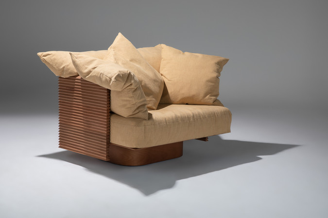 A peça que nasce a partir da coleção Francisco - uma bela homenagem ao filho mais novo do designer Bruno de Carvalho - também tem o mesmo detalhe de ripas nas costas e uma largura generosa, que convida para explorar diversas maneiras de sentar, por exemplo, como uma namoradeira. No quesito conforto, o assento recebe um tecido com caimento mais solto e recheio combinado com três tipos de espumas, já as almofadas que coroam as ripas de madeira do encosto são compostas colméias de fibras de pet reciclado, tecnologia esta que simula a mesma qualidade e densidade das plumas de ganso, isso tudo sem agredir o meio ambiente.