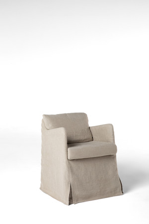 A elegância descontraída do estilo de vida carioca chega traduzida nessa cadeira. Conseguimos uma leveza estrutural neste produto usando alumínio revestido em tecido dublado de espuma e rodízios. O conforto se dá pelo formato e pela composição de espumas softs aplicadas em diferentes densidades e todas calandradas para que tenham sempre a resiliência necessária da matéria. Para finalizar, abraçamos as espumas com uma camada de plumante, que aumenta o conforto, o toque e o caimento do tecido. O acabamento fica por conta da capa removível de linho, proporcionando uma leveza visual que reforça a alma carioca. Destaque para o detalhe em latão fundido em molde de areia, desenvolvido à mão pelo designer Bruno de Carvalho.
